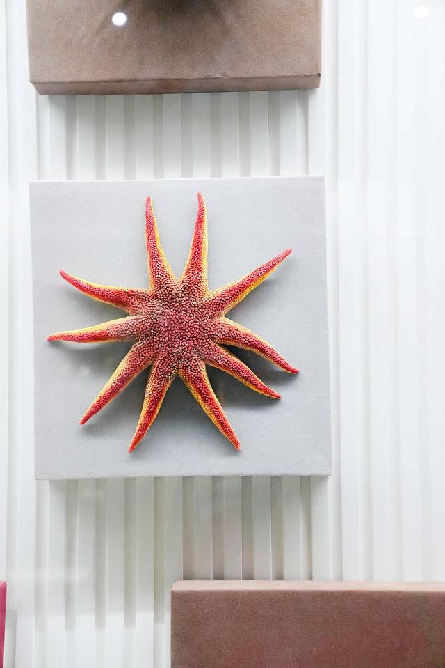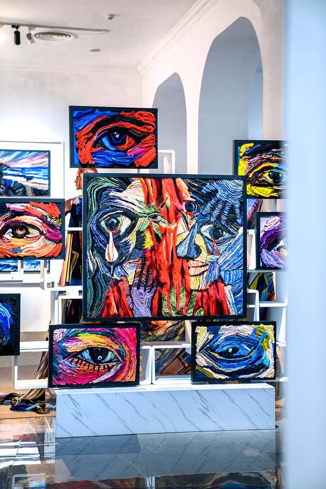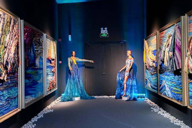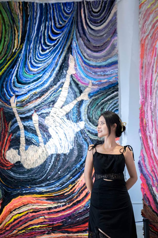 这里不定期会举办不同的展览,我看的是《向海而生》,艺术家用七彩的布料绘制成画作,五颜六色相当好看。