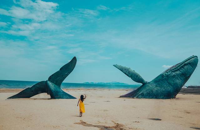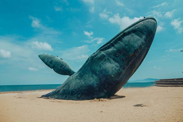 生当如鹏起,终当如鲸落聆听大海的声音,于下坠的梦里化作孤独的鲸沉睡在岸边的孤岛中它像似要跃出金沙滩但大半的身躯又被淹没在沙地。
