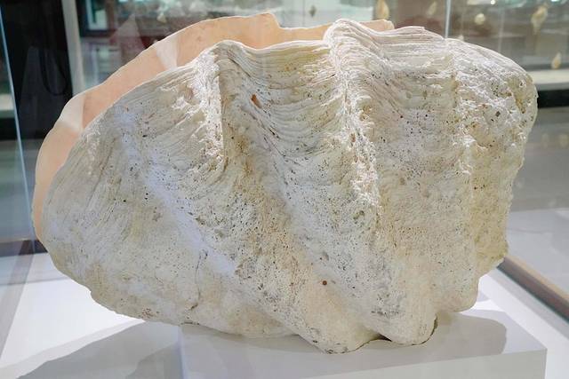 打卡海贝之王,入馆后,映入眼帘的就是“贝王”大砗磲,最大体长可达1.8米。青岛贝壳博物馆展出的大砗磲足足有1.3米,是保护动物之一。