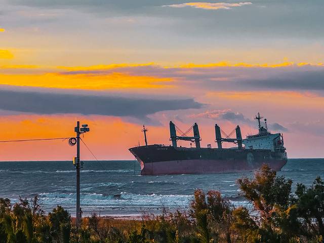 布鲁威斯号是一艘巴拿马籍散货船2022年受台风影响搁浅在此。由于搬离运输费用极高,目前只能搁置在此慢慢地它成为了当地网红打卡地。