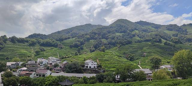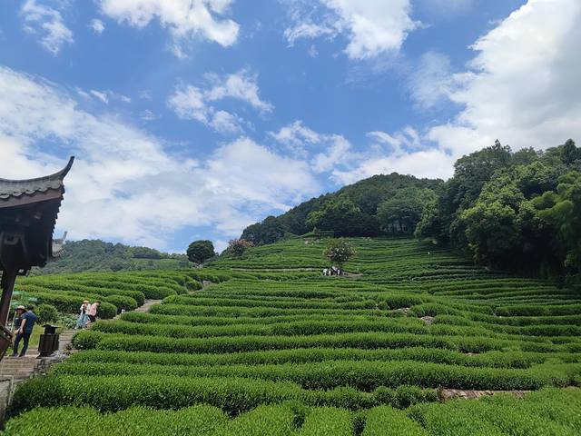 从博物馆一路下坡就来到 龙井 村,可以直接开车进去,开到茶园脚下停车开始爬山。遇到好的天气,风光无限好。