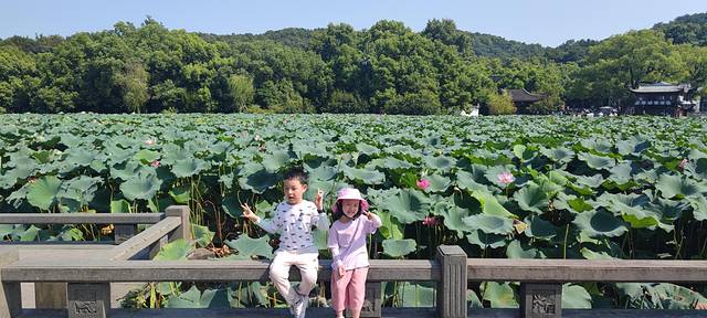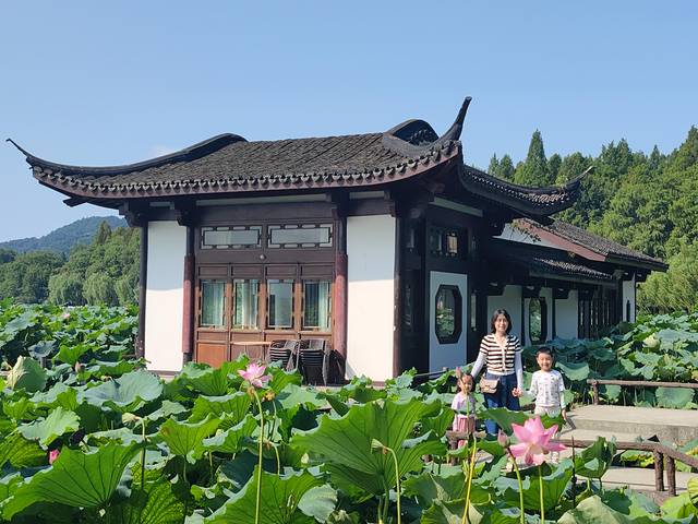 一晃十年,再次来到 杭州 ,西湖还是那样美丽,而游览西湖的人从一对新婚夫妇成为四口之家。7、8月份是曲院风荷最美的时候,曲院风荷当然是游西湖的首选,早上8点钟的曲院风荷,清雅而温婉像一位宁静的才女 。