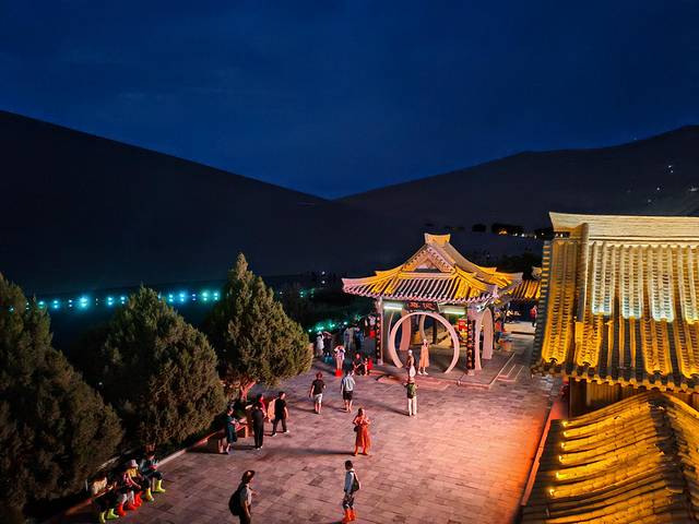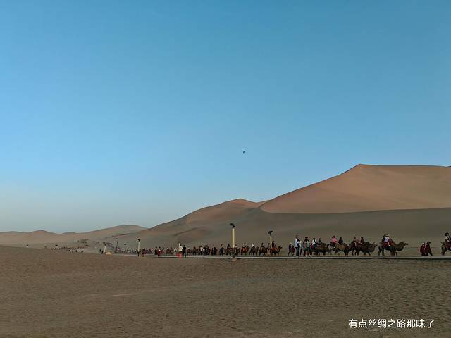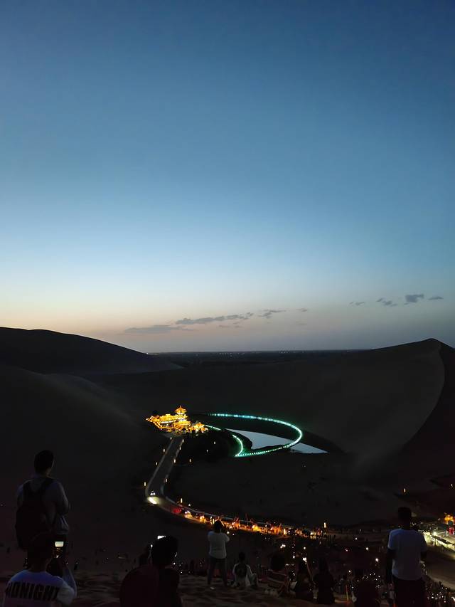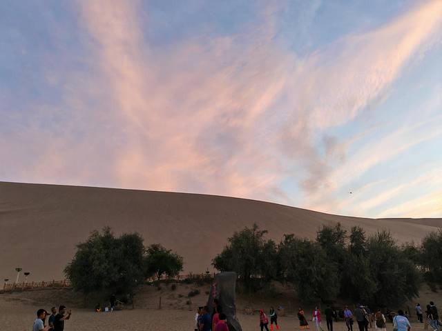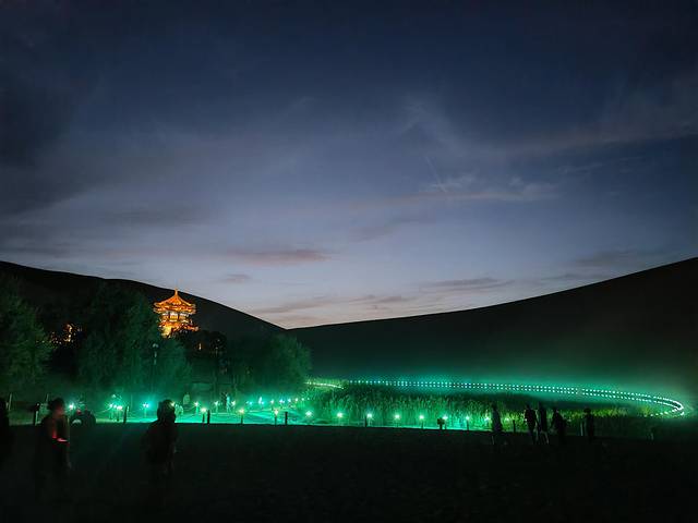 中午太阳太毒,吃了点东西就去青旅睡觉,下午五六点再出来。鸣沙山周围有很多租借衣服和拍写真的。大概500-1500不等,也可以299租衣服化妆,然后两个人去拍。鸣沙山门票110,三天(自然日)无限次出入,我为了把门票值回来,三天进去了四次 🤦 真的要看一次夜景,绝美。9月初的时候是晚上8:30亮灯,可以在附近看楼阁,也可以爬到沙山上去看远景。白天可以骑骆驼,据说是中国距离最远的骑骆驼,大约4公里,戴口罩,熏得想吐🤮