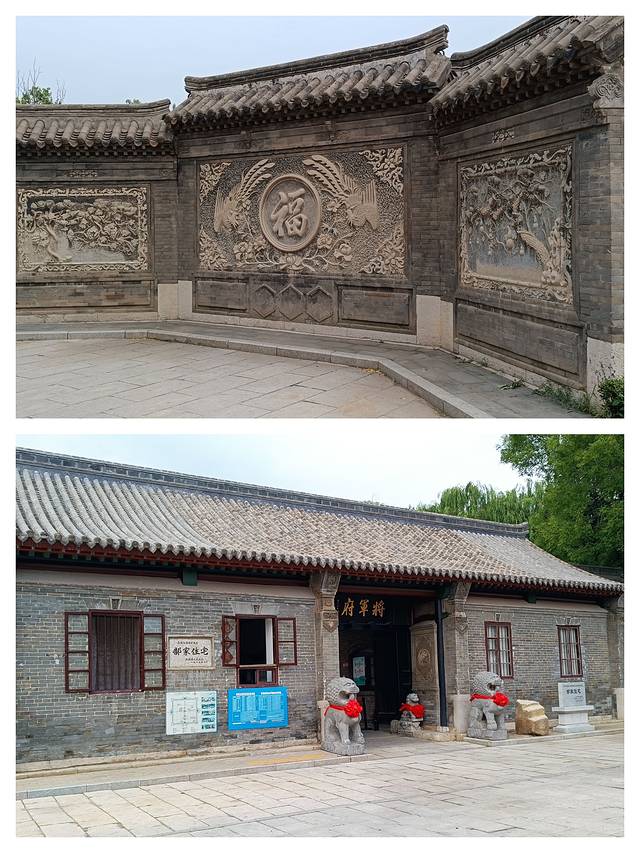 特别喜欢《将军府》门前的影壁,八字形撇山影壁,丹凤朝阳拱托着团福图案,两侧葫芦藤,葡萄架----寓意多福禄,多子多孙。