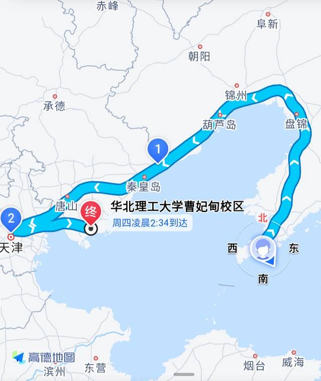大学在唐山曹妃甸-渤海的东岸,与大连隔渤海相望。考虑到80多岁的老母亲,还有上学的行李。决定自驾游。现在的道路建设通畅便捷,手机导航高效准确,非常适合在路线周围景点走走停停,边走边玩。