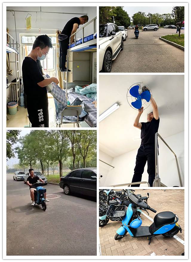 到宿舍整理床铺,教会驾驶共享电动踏板车