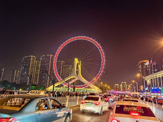 远处的天津之眼,由于当天是天津大爷跳水(网上很火的),全是人。