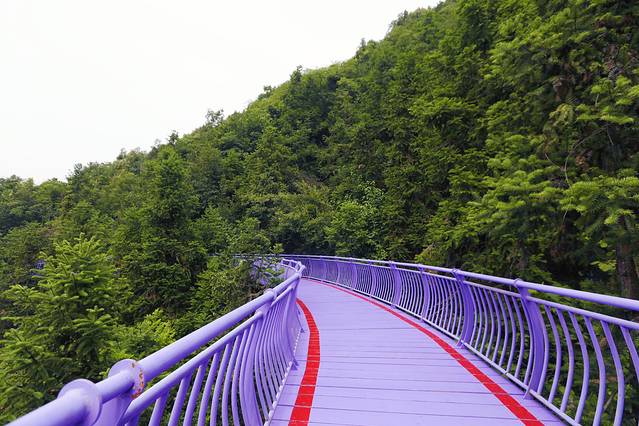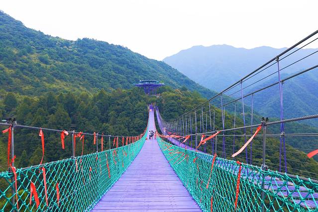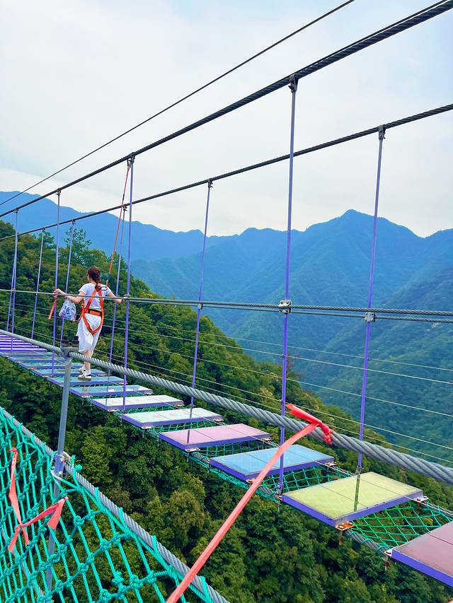 如果你还觉得意犹未尽,那么再往前走的云梯天桥,一座建在两座山之间的索桥,走到中间稍有摇晃,环顾下四周的风景,就不会那么害怕了,当然如果你觉得这样还不够刺激,旁边有一条更挑战的“路”等着你来pk,“步步惊心”犹如它的名字,走在上面更有悬空德感觉,但是走这条路会带着安全保护,这点不用担心。