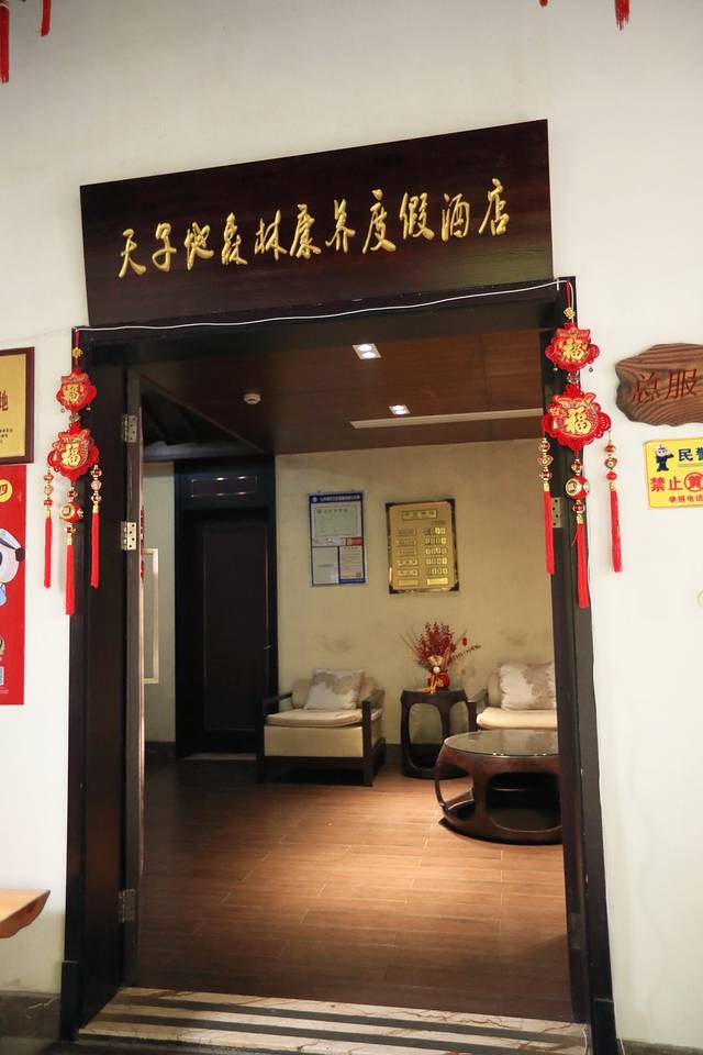 大门口一片紫藤花低垂而下,仿佛闯入了一片紫色的瀑布,一整个浪漫住了,刚进入大门就挪不动脚步,赶紧拍拍拍,如果想要留宿,可以入住景区内的【天子地森林康养度假酒店】江南园林风格,温馨舒适,先办理入住放下行李,轻松出发,再往前走就是酒店的餐厅【天子阁】本地特色农家菜,游玩回来慰劳下饥肠辘辘的胃。