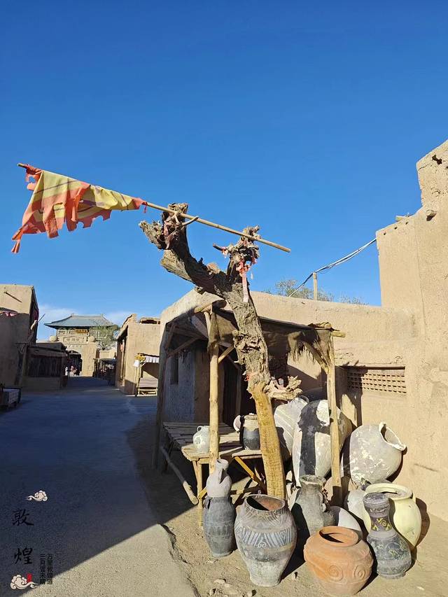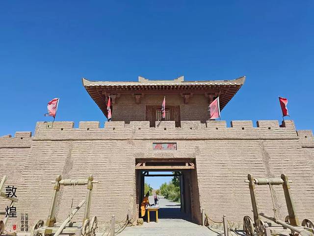 敦煌古城和敦煌丝绸遗产城两个景点选其一,不知道敦煌丝绸遗产城是什么样子,但是敦煌古城不建议去。它是仿宋朝沙州古城建造的,是《封神演义》《新龙门客栈》《奔跑吧兄弟》等影视剧和综艺节目的取景地。古城面积不大,大约半个小时可以逛完,可能是因为淡季的原因,里面连小店都是关门的,真的很荒凉,可能人多能好点吧。