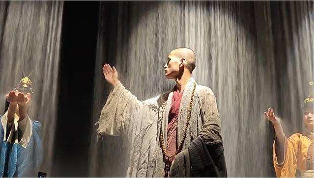一部分是情景剧,《又见敦煌》是情境融入式演出而得名,但是个人的体验感并不太好,为了近距离观看,就得跟引导员快速跑来跑去的,剧场内灯光比较昏暗,人又多,万一有人摔倒,会比较危险。