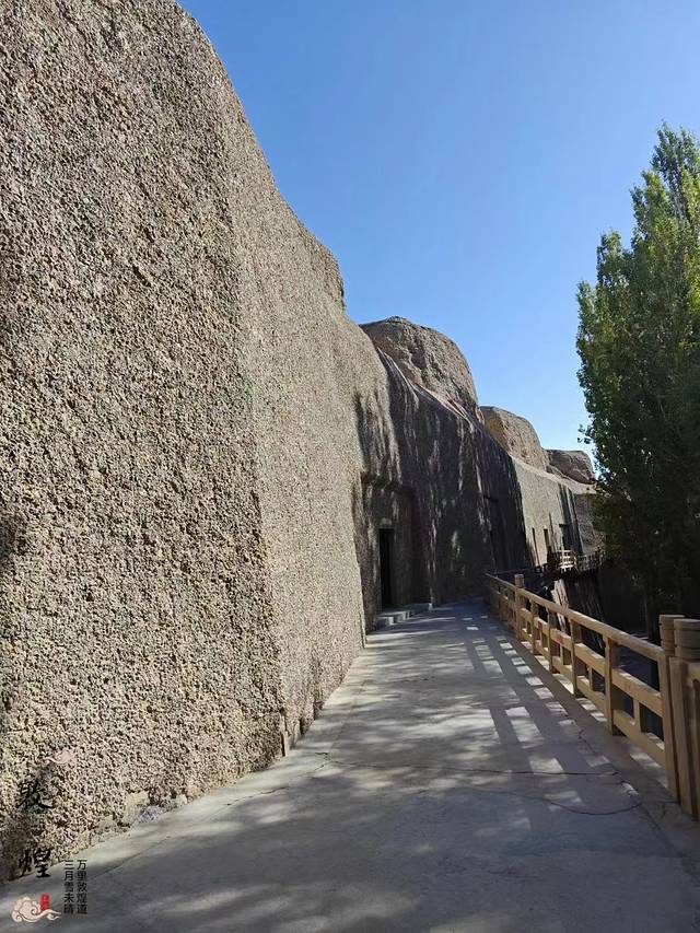 在党河河岸的悬崖峭壁上静静陈坐千年,伴着夕阳看黄沙,化作往事尘埃。