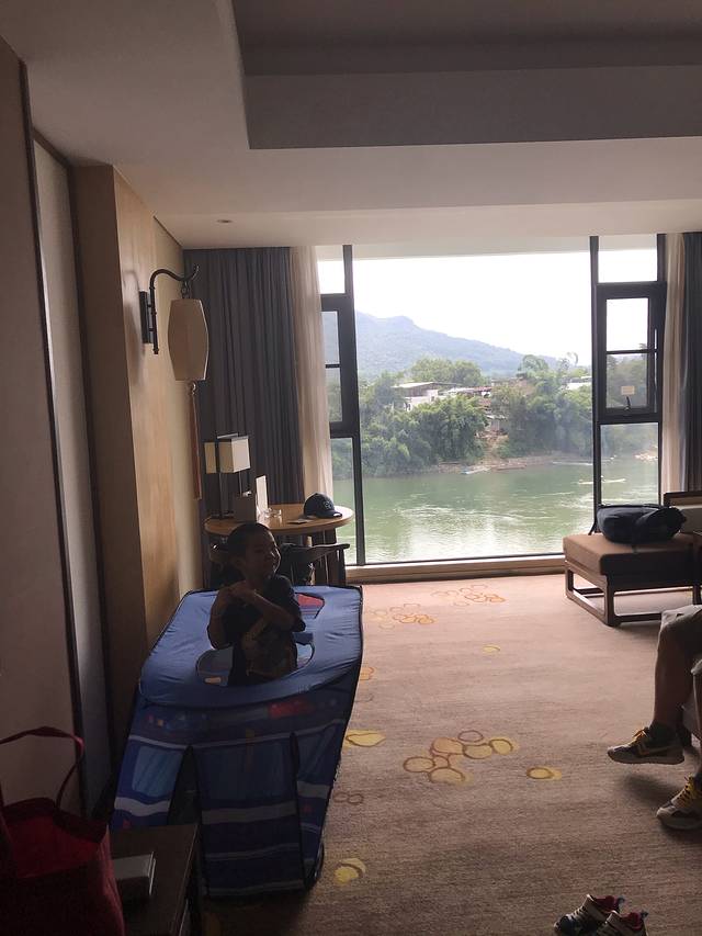 中午在兴坪古镇出来后直奔大圩古镇,开车约1小时,入住的桂林古镇江璟酒店,以前我跟哥哥来住过,很不错的一家酒店,房间里可以看到漓江风景