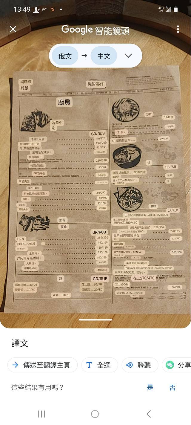 Google translate 可翻譯餐牌/對話就操作不了