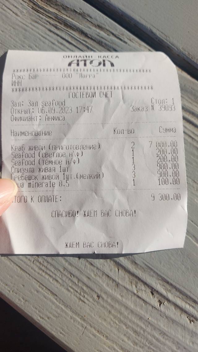 皇帝蟹3500x2kg共7000,多食了2款海鲜,飲了啤酒