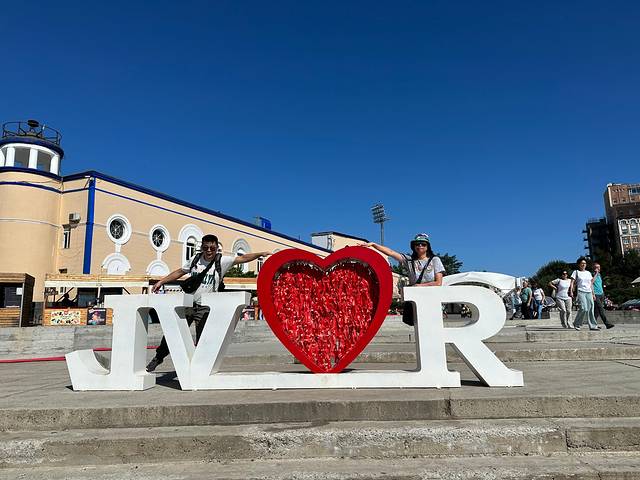 右手步行街、有小石沙灘,有個打卡的俄文LOVE字,覺得反了,原來是俄文當刻先覺得人在海参崴,好興奮