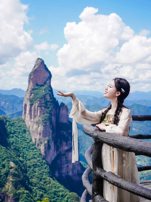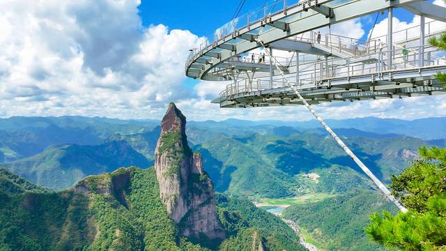 沿途一路走,一路就可以欣赏到神仙居的风光,在木栈道上仿佛可以三百六十度看观音峰。这一段路其实还蛮好走的,没费太多体力就走到南天顶了,此时顶上已经不少人。