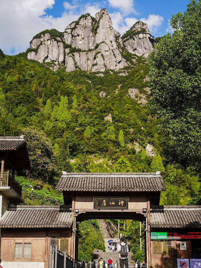 抵达神仙居大门时候不过是八九点,然而景区大门口已经汇集了不少旅游团。这是在我意料之外的,原计划想先去佛影莲韵的,看了下排队的人过多便选择先上山,建议直接扶梯+缆车,一会就可以到顶上。