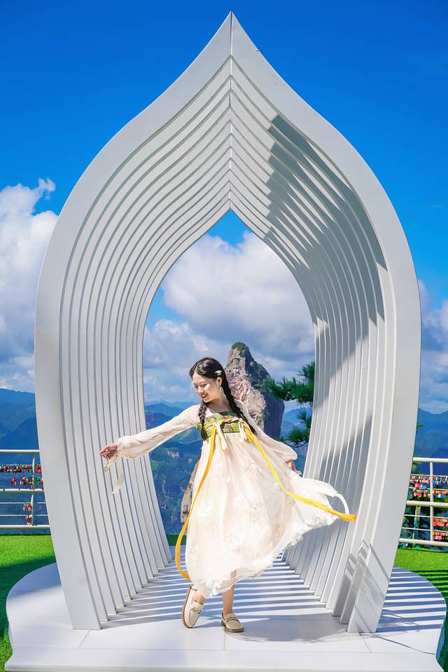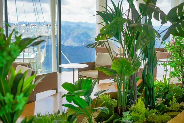 站在南天顶上风很大,有种飘飘欲仙的感觉,胆子小的千万要小心了。南天顶上有个观景绝佳的咖啡屋,可以360度看周围,咖啡屋售卖的杨梅拿铁真的yyds,造型好看也好喝,如果错过那就太遗憾了。我坐着窗边抱着我的杨梅拿铁,想就此在这摆烂。