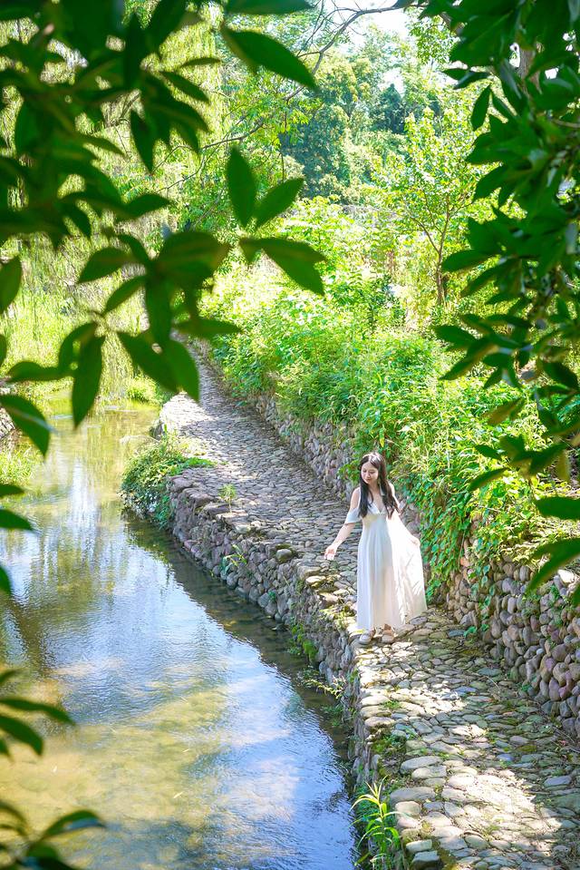 古镇里几乎没有什么游客,商铺几乎是大门紧闭,就连小贩都很少。而就是这样的地方却让我有了种宁静的感觉。除了游客中心看起来比较显眼,古镇入口隐蔽在林荫道之中,周围的小溪与池塘,在阳光照射下,树叶落下的点点阳光,梦幻极了。