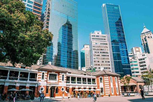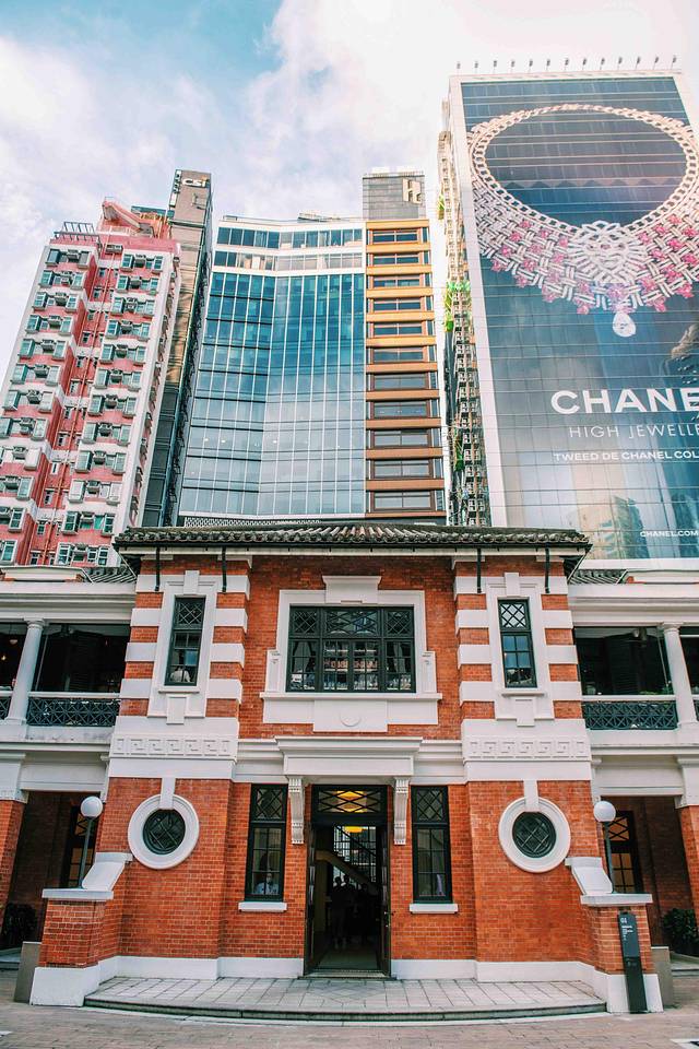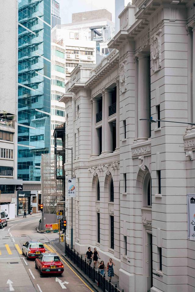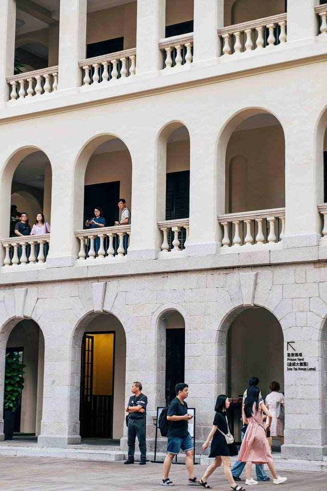 从半山扶梯上来就能抵达大馆,“大馆”位于香港岛商业中心的前中央警署、中央裁判法院及域多利监狱,是一座被围墙围起来由各种历史建筑组成古建筑群,建筑群百多年来见证了香港翻天覆地的变化,里面充满了故事。而且那里多半是维多利亚式和希腊式的建筑。从城市的角度来看,这是个位于世界上人口最密集的城市之一的市中心的一个罕见的“庭院”。