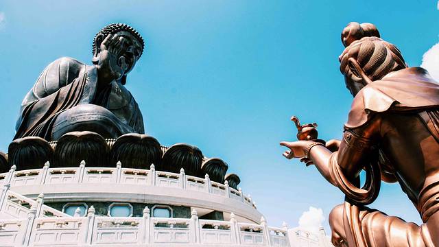 登大屿山,仅半天的时间即可在此感受香港的另一面,选择搭乘昂坪360缆车前往,是这趟旅行中最为惊险刺激的项目,在缆车上就能看到大屿山的山光水色,昂坪360缆车分为普通缆车和水晶缆车,而水晶缆车绝对是一个勇敢者的游戏。缆车行程总长5.7公里,行程约为25分钟,昂坪360的设计分成三段,需要拐弯两次,旅程由东涌缆车站出发,缆车跨过东涌湾到达赤蜡角的转向站,缆车转向六十度后,从赤蜡角另一边继续横过东涌湾,然后攀升至北大屿山公园内弥勒山附近的另一个转向站,最后抵达昂坪缆车站。