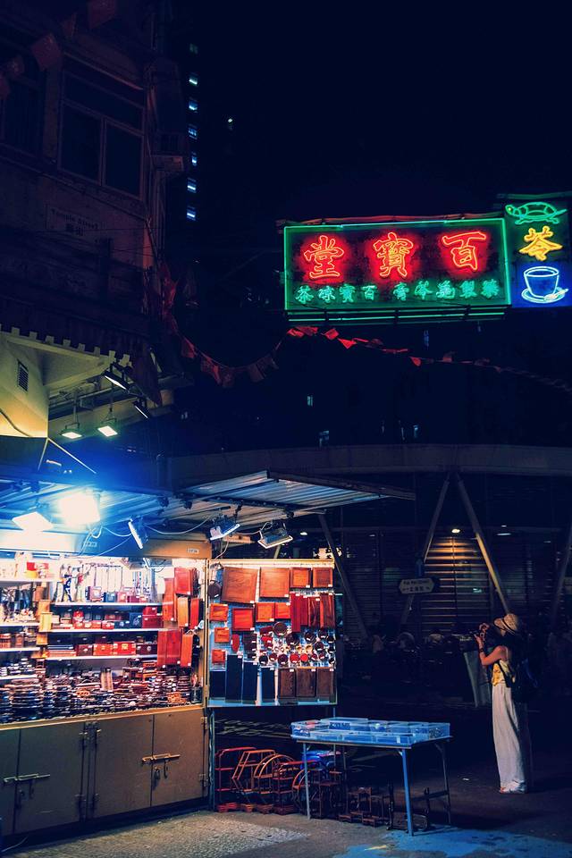 要完整感受香港的夜生活,除了享受兰桂坊的微醺时光,庙街夜市也是绝对不可错过的一站。在这里能领略到香港市井生活的魅力,入夜的庙街,弥漫着烟火气息和复古情调,这里是老香港夜生活的缩影,街道两旁的霓虹灯交错闪烁,沿着油麻地一直通向左敦,每一道光影背后都可能隐藏着一个独特的故事。