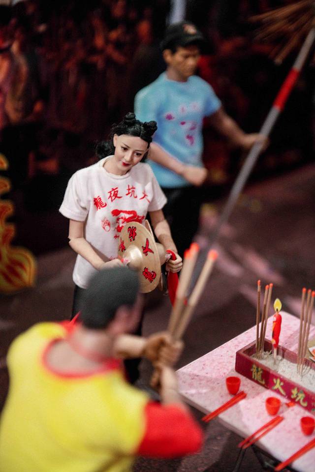 一条长龙,身上点燃了数不清的线香,由数十位健壮的舞龙手扛举着,这是舞火龙的标志性场景。在锣鼓喧天的伴奏下,舞龙手们奋力舞动,将火龙带入人群之中。