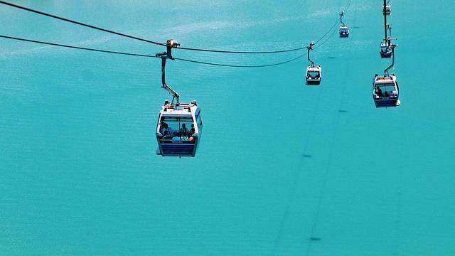 昂坪360缆车上亚洲最长的双缆索缆车系统,水晶缆车更被评为世界最佳十大缆车之一,水晶缆车为全透明设计,四面全景环窗,连脚底都是透明的玻璃,踩在上面有一种悬空的感觉,能清楚的看到碧海山峦就在脚下,走过的风景一览无余,一会行走在水面上,一会漫步在山峰之上,风景都是变化多端的,25分钟的时间让人有一种如鸟般翱翔的崭新视觉。