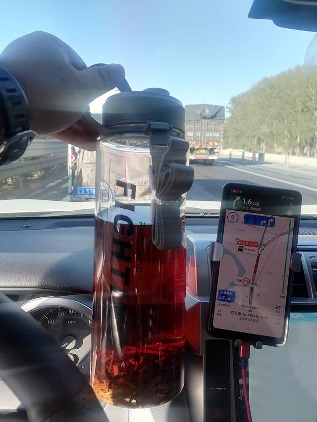 早上6点沈阳出发,比较早,因为车程大约4小时左右,走京哈,在我的印象中,京哈好像总是堵车,所以早一点,这个水瓶子是刚刚买的新的,上一个水瓶子在陪我走了将近5万公里后光荣下岗了,这个是第一次陪我出行。