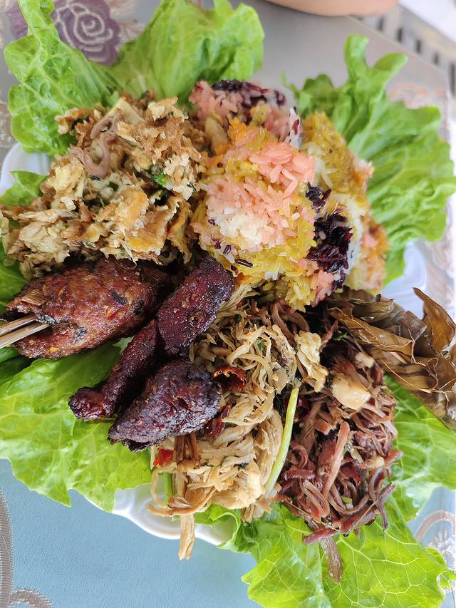 这个是手抓糯米饭,这个是三元米饭,我可以告诉你们,我们两个人根本就吃不完,后面问了当地的朋友,他们一般都是两元米饭就可以了,所以大家千万不要点多了,到了这边还是可以试试的,这个店在四中的对面,你们还可以吃完饭以后逛逛市场,就在这家店的后面哦。