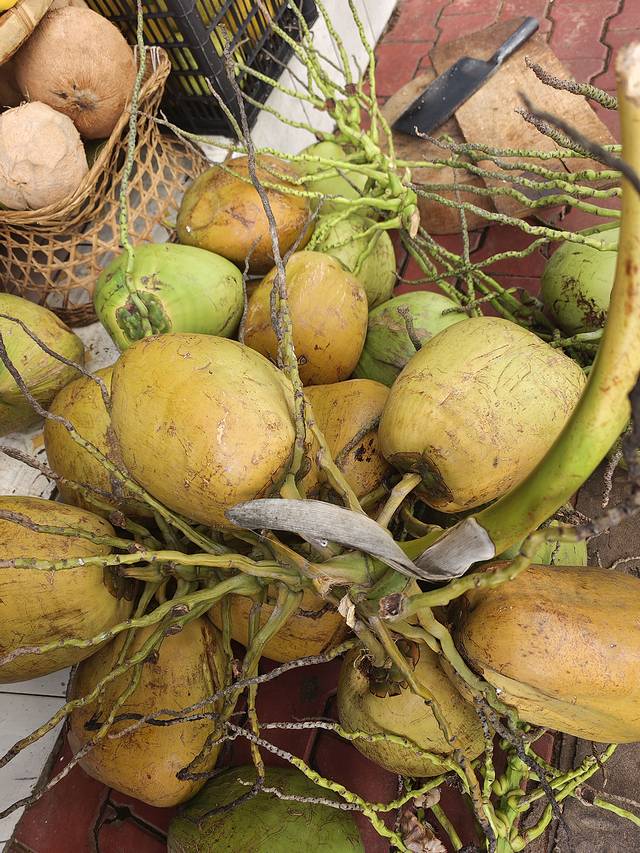 就在炸油条店往巷子里走,有一家水果店,椰子有三种, 我买了一个最贵的可以喝水和吃肉的,老板很细心的帮我都削开,椰子水用一个容器装好,还贴心的配好了吸管,椰子肉也给我弄出来,让我回家煲鸡汤喝,结果在路上就被我啃着吃了,真的是那种越嚼越香的口感,很浓郁的椰子香味,有去那边的小伙伴一定要尝尝哦。