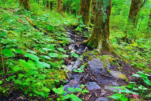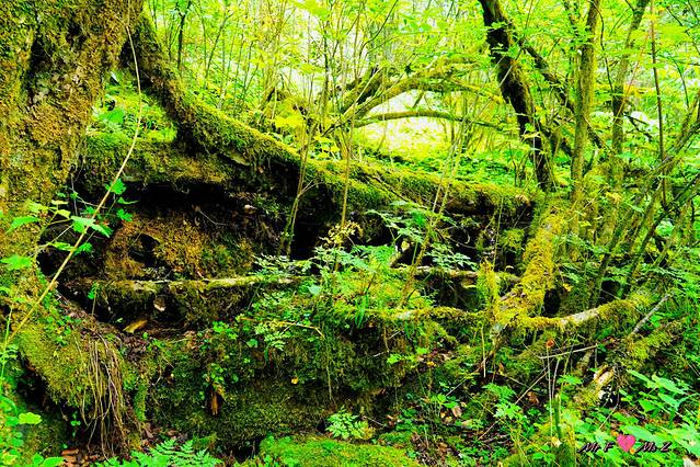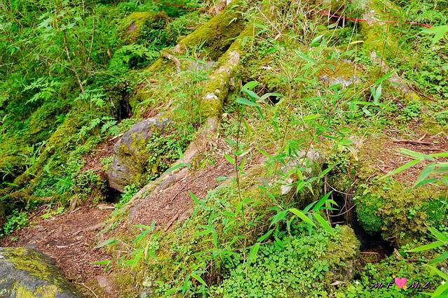 沿着步道越往上走越原始,森林里随处可见青苔。这棵树的根系发达,大树根就暴露在岩石之上,一看就是经历过峥嵘岁月的模样。
