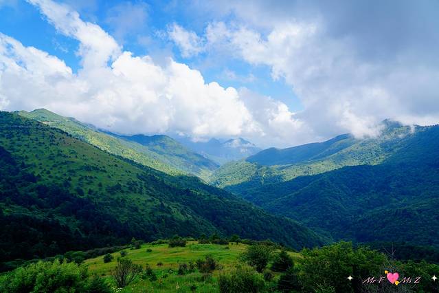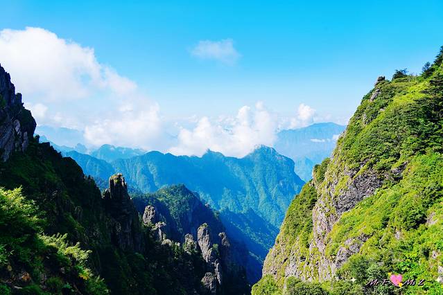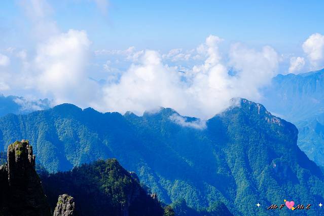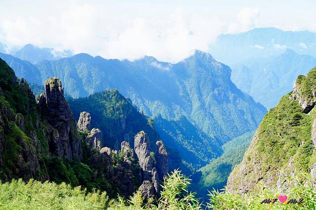 在神农架你可以登高望远,天际处连绵的山脉宛如海上起伏的浪花,笼罩在变幻莫测的云雾里。