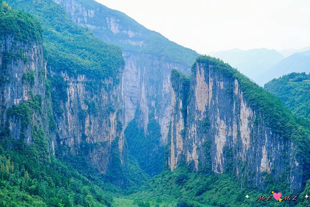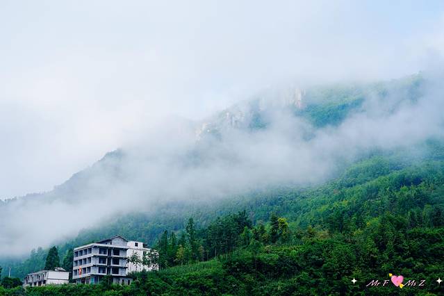 上方的绝壁在雾中若隐若现,犹如仙境中的神山。山坡上的树木有了雨水和雾气的滋润,显得更加鲜绿。近年来,随着大峡谷知名度的不断提升,附近的民宿如雨后春笋般涌现,有兴趣的童鞋也可以选择和酒店不一样的住宿体验,感受下当地的风土人情。