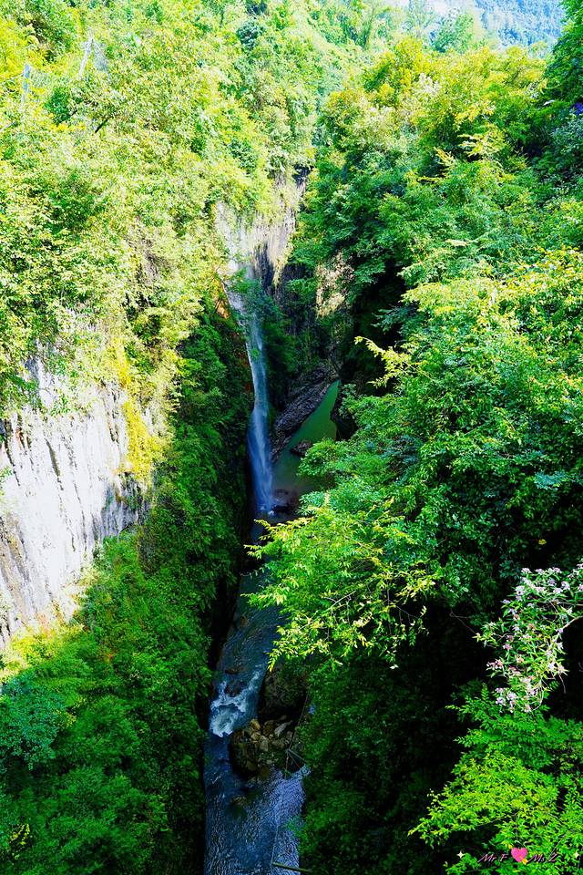 峡谷内秀峰林立,溪水潺潺,瀑布奔涌,小桥飞渡,老树婆娑,新绿点点。步行期间,仿佛有一种忘却尘世俗味,得大自在的野趣。