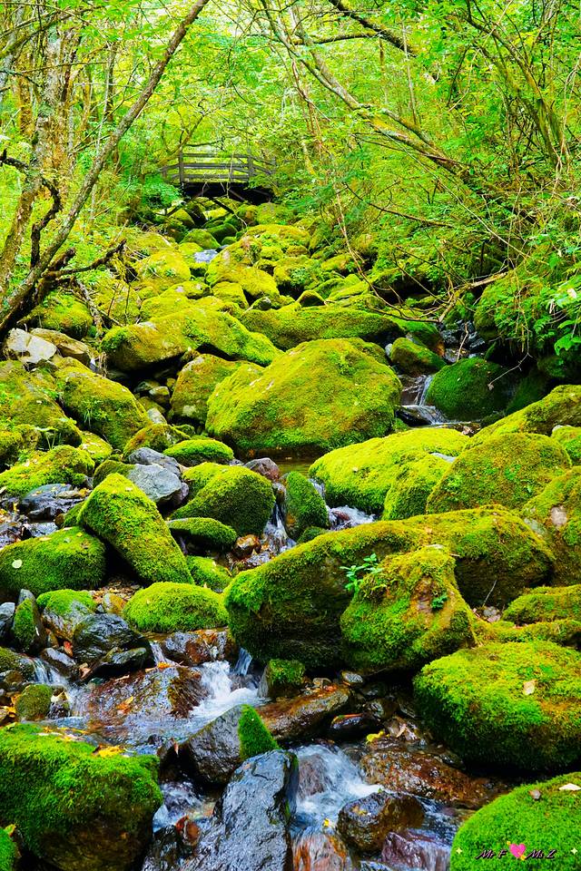 神农架是一个天然的绿色氧吧,沿着铺设的栈道走进密林深处,草木繁盛,溪水潺潺,河道中遍布长满青苔的巨石,这些都在向世人展示它的原始和野性。