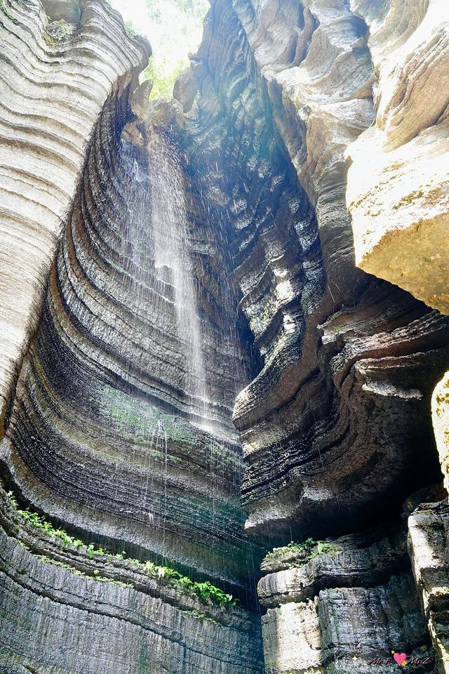 一块“金猴听瀑”的标牌树立于此,可是四周并没有见到瀑布的身影。疑惑间,看了简介方才恍然大悟,金猴听瀑妙就妙在这个“听”字上。此时周围空无一人,侧耳倾听,除了清脆的鸟鸣声,还能隐约听到树根覆盖的地表下传来暗河隆隆的水声。