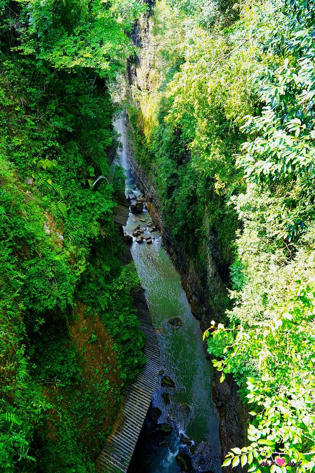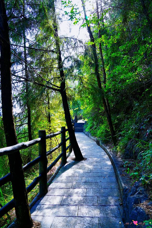 沿着木栈道前行,临下台阶时会给人一种错觉,仿佛再往前一步就是万丈深渊。