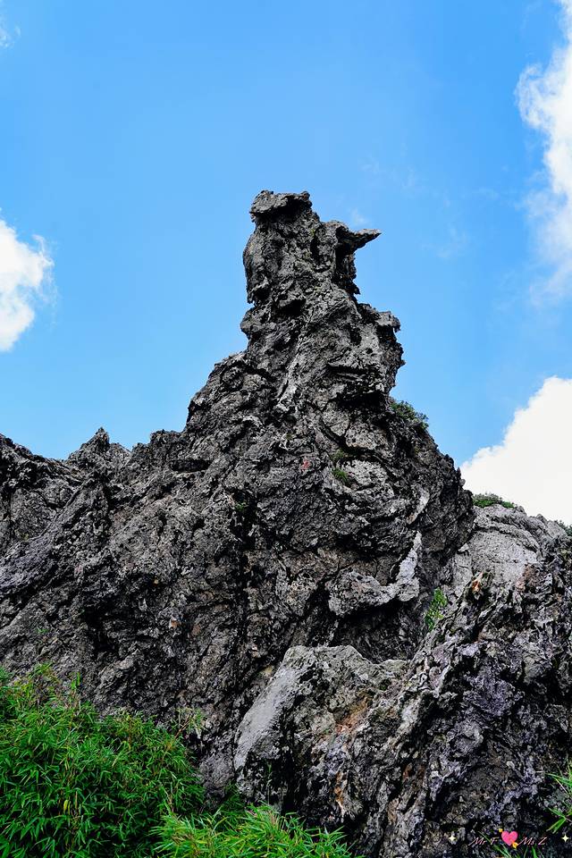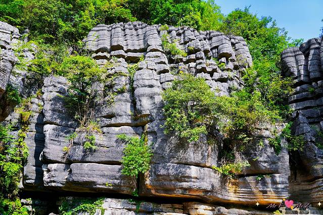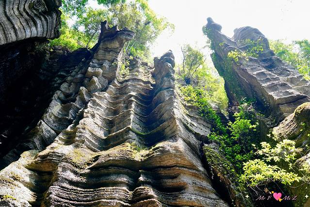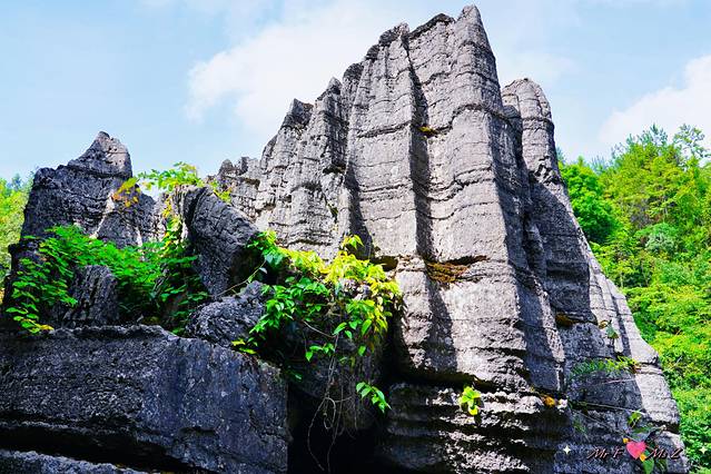 莲花寨是梭布垭的核心景区,里面分布着千佛岩、神虎含玉、群蛙啸天、笋子淌…这些奇石无一不是大自然鬼斧神工的杰作。而犀牛沟则是核心中的核心,318@恩施站梭布垭石林站牌就在犀牛沟,特别适合打卡。