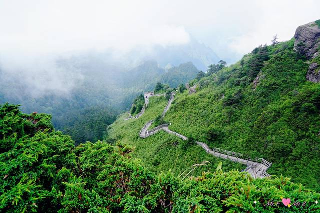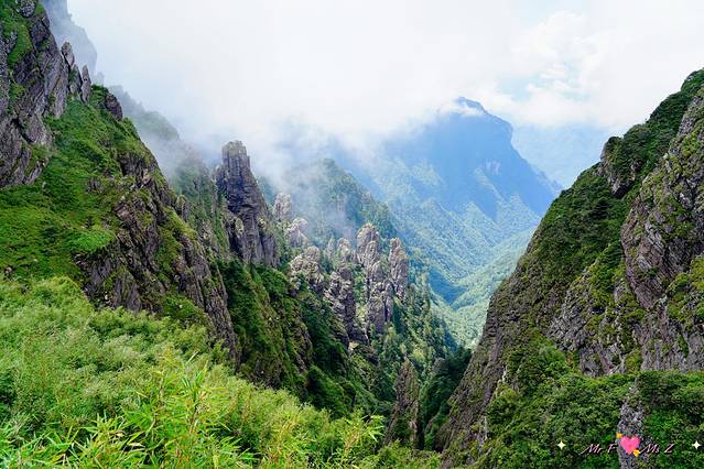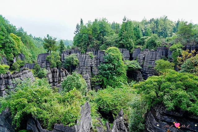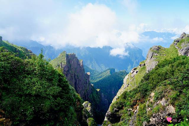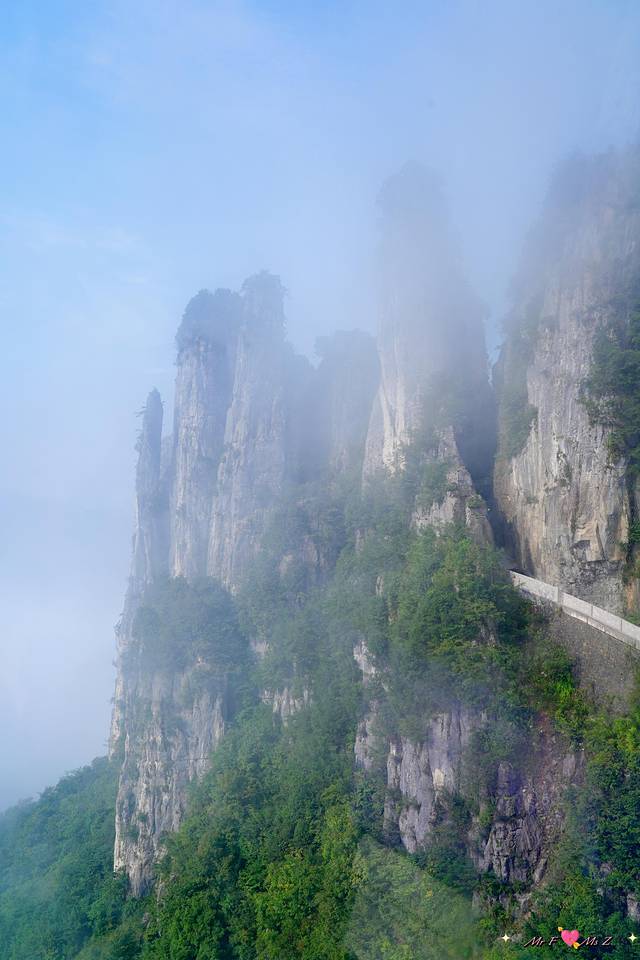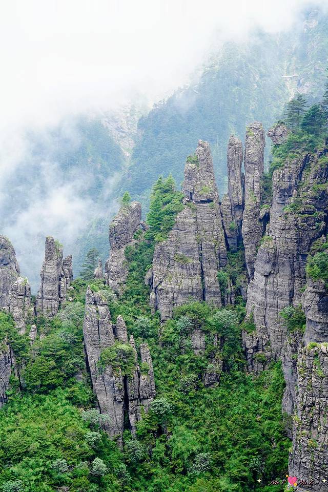 你也可以沿着神农谷的龙型天梯拾级而下,在谷底近距离观赏由奇形异状的山石组成的石林,山间岚雾缭绕,像极了仙境。