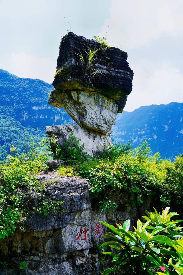 山上人家久负盛名的“灯影石”矗立在悬崖绝壁之巅,它是洪荒时代的产物,被誉为“万里长江第一石”。