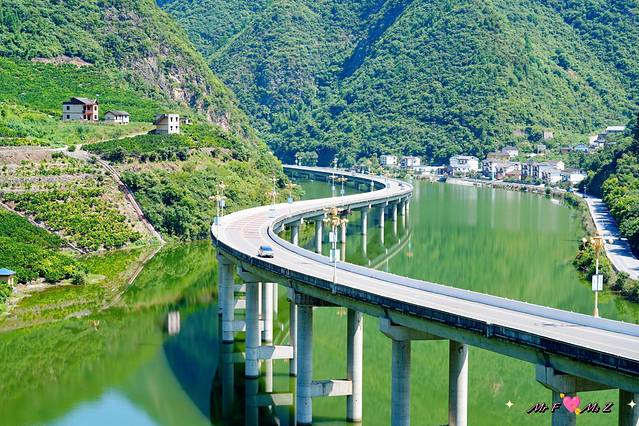 古昭公路有4公里建在峡谷溪流中,号称中国最美水上公路,其建造初衷是为了避免开山毁林,保护生态环境。