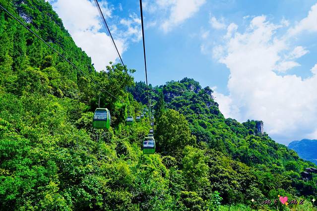 客运索道东起云龙地缝,西至七星寨小楼门,全长2266米,上下站落差792米,最高运行速度6米/秒,最快只需6分半钟就可以从下站到达上站啦。索道乘坐起来安全又舒适,而且还可以通过大型玻璃窗欣赏沿线山色风光。索道上站附近是土司城堡和石芽迷宫。