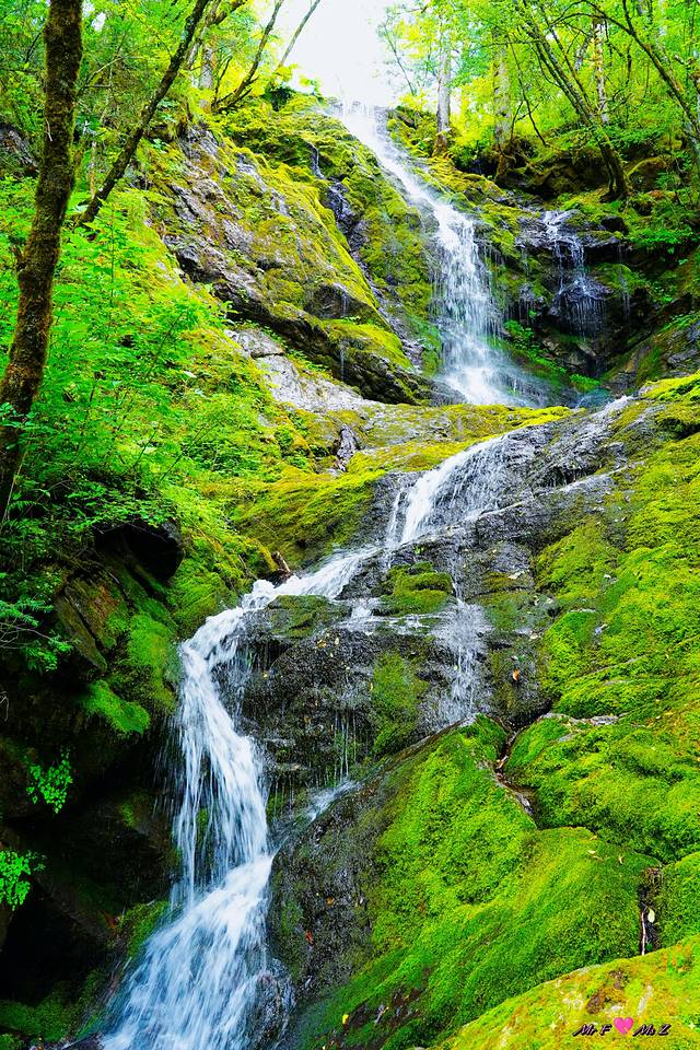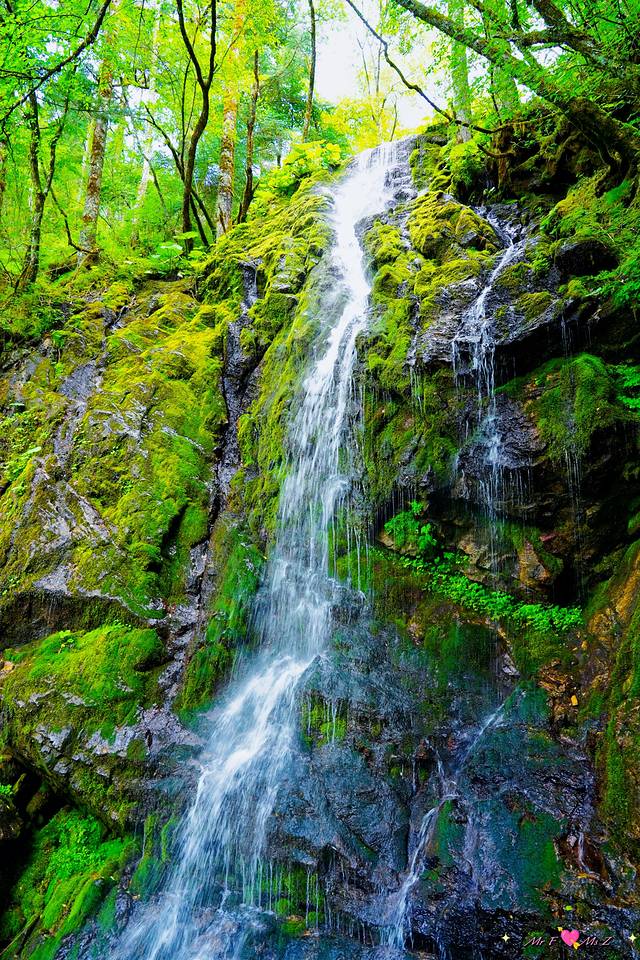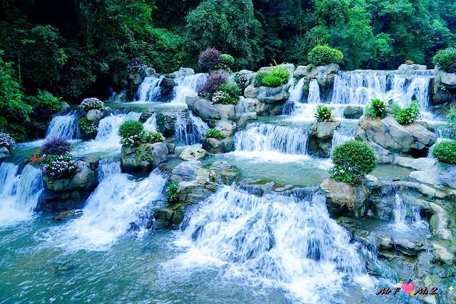 这处迷你的三叠瀑很是特别,水中的石头上种满了花草,给本就灵动的流水又增添了几分生机盎然。
