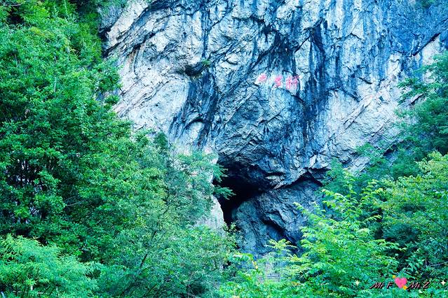 旱夔门的成因源于早期地下暗河自此通过,岩体受溶蚀而崩塌,遂成夔门之状。旱夔门的玩法有“上天”和“入地”两种:所谓“上天”,是指底下的村子里有山路可登上旱夔门的顶峰;所谓“入地”,是指山门背后有一条长3公里的迷宫河,河谷两岸树木茂盛,四面被千仞绝壁围绕,穿过山门下行即可进入迷宫河景区。有兴趣的还可以去迷宫河源头一探究竟,那里有一个深潭,每隔十年左右,潭中就会突然喷出数十米高的水柱,响声如雷,10里外都能听见,当地人形象地称其为“炮泉”。