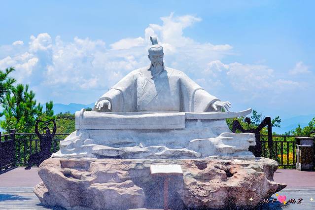 走过风雨廊桥,一个占地面积7000平方米的广场出现在眼前。公元223年刘备兵败夷陵,退至白帝城,驾崩前在白帝城永安宫托孤于诸葛亮,诸葛亮临危受命,竭智尽忠中兴大汉。为凸显诸葛亮大忠大义的精神,景区修建了忠义广场。广场上最引人瞩目的就是一尊高7.9米的诸葛亮铜像,只见这位羽扇纶巾的“古今第一人臣”,衣襟飘拂,神情肃穆,似乎在筹谋北伐事宜。