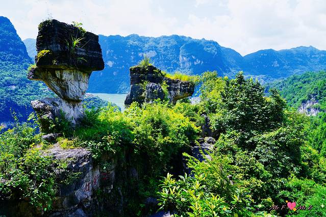 从时光索道上站出来,迎面的景象确实感觉一下子把你从现代拉回到了亿万年前。在震旦纪和寒武纪,当时中国的地势东高西低,我们所处的位置和喜马拉雅山一样都是一片汪洋大海,直到三亿年前的三叠纪开始,喜马拉雅造山运动将海底提升,天崩地裂,山体滑落,留下几块孤单的石头屹立在三峡人家的山顶。