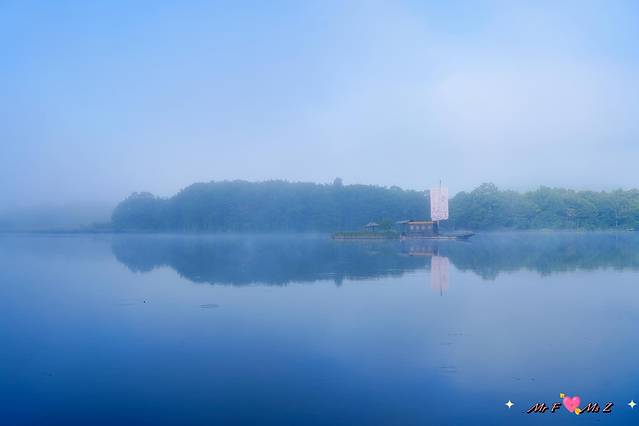 湖中心有个小岛,名曰桃花岛,岛上种满了桃花。春暖花开的时节,缤纷的桃花飘落在湖面上,与湖内白鹤、天鹅、野鸭形成一道绝美的风景,因而得名。