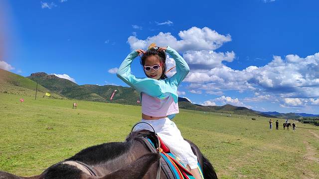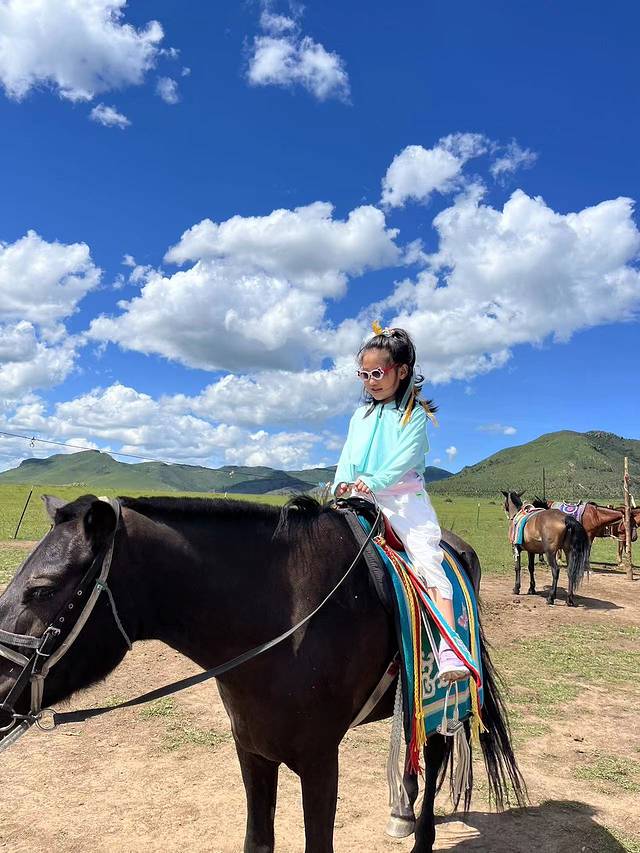 豌豆小朋友以前都是骑小马,这是她第一次骑大马,哈哈哈(好像这个景点已经不是珠日河了,是附近另一个草原景点,说实话豆爸豆妈没有去,很多地方并不是很清楚,就知道附近吧)